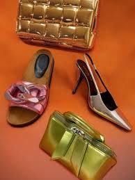 Gold, silver, and rose-tone bags and sandals are adding shine to minimal outfits.